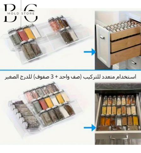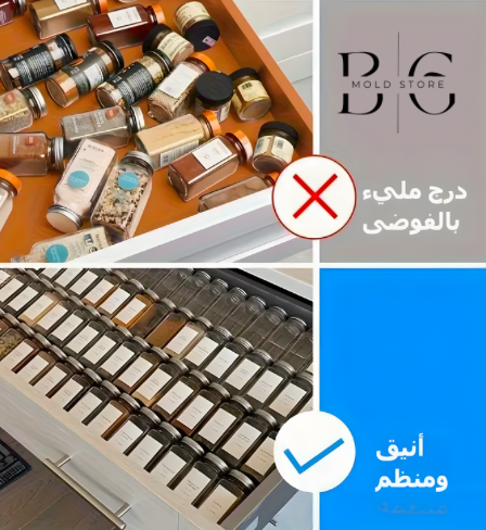 المنظم يمنحك نظرة سريعة على كل التوابل ويستغل مساحة درجك بكفاءة، بينما يحافظ على النظام والنظافة في مطبخك.